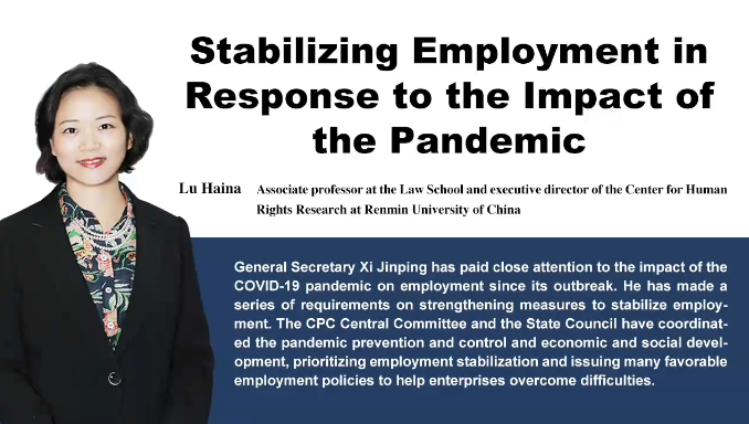 Since the outbreak of the COVID-19 pandemic, China has had to press the "pause" button on its economy in order to fight the epidemic and protect people's rights to life and health. Work, production, and commercial activities were suspended for a period of time, causing some problems related to the individual rights and interests of employers and employees. Today, we are pleased to invite Ms. Lu Haina, associate professor at the Law School and executive director of the Center for Human Rights Research at Renmin University of China to join us in a discussion about how to protect the right to employment amid the COVID-19 pandemic.