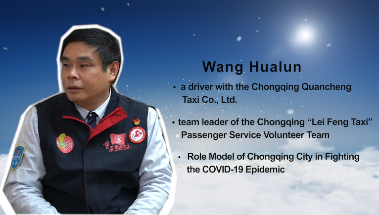 Wang Hualun is a driver with the Chongqing Quancheng Taxi Co., Ltd., and the team leader of Chongqing’s “Lei Feng Taxi” Passenger Service Volunteer Team. Wang Hualun was awarded the honorary title of “Role Modelof Chongqing City in Fighting the COVID-19 Epidemic” in September 2020.