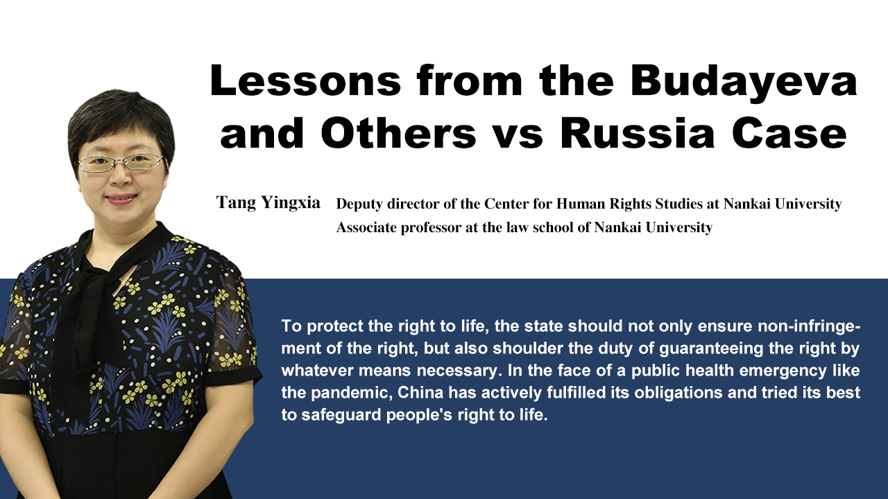The rights to life and health have always been considered as basic human rights in both theory and practice. In this battle against COVID-19, our country has prioritized people's rights to life and health and protected basic individual rights so as to ensure that people's basic human rights are respected and safeguarded. Today, we are pleased to have Professor Tang Yingxia from the Center for Human Rights Studies at Nankai University. She will share with us her thoughts on the state's obligation to safeguard the right to life during the pandemic.