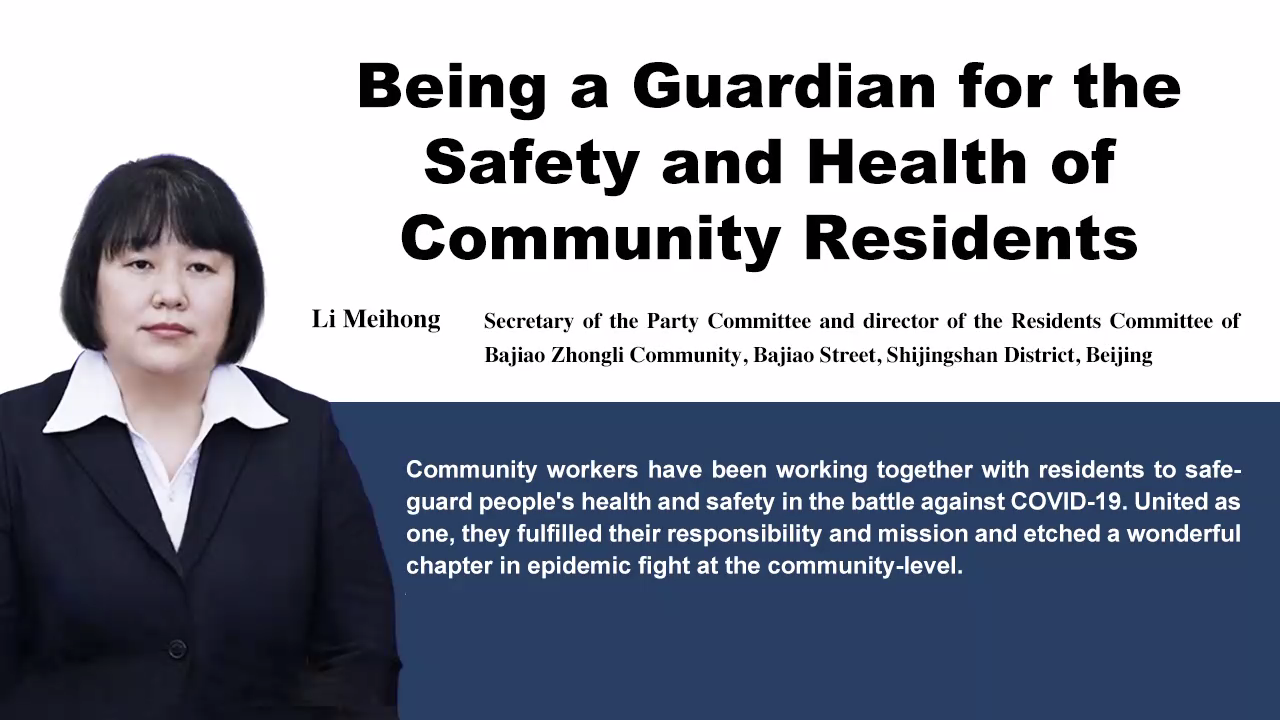 Urban and rural communities are places where people live and work. They serve as the first "fortresses" for COVID-19 prevention and control. By guarding communities against the epidemic, we can effectively contain its spread to protect the lives and health of the people. Since the outbreak of COVID-19, 4 million urban and rural community workers have fought together against the epidemic, defying the risks. In particular, Party members and officials at the community level have been taking the lead, forming a powerful barrier against COVID-19 and demonstrating the mighty power of the people to win the war against the epidemic. Today, we are pleased to invite Ms. Li Meihong, secretary of the Party Committee and director of the Residents Committee of Bajiao Zhongli Community, Bajiao Street, Shijingshan District, Beijing, to join us in the discussion about how to build a strong community defense line to prevent and control the epidemic.
