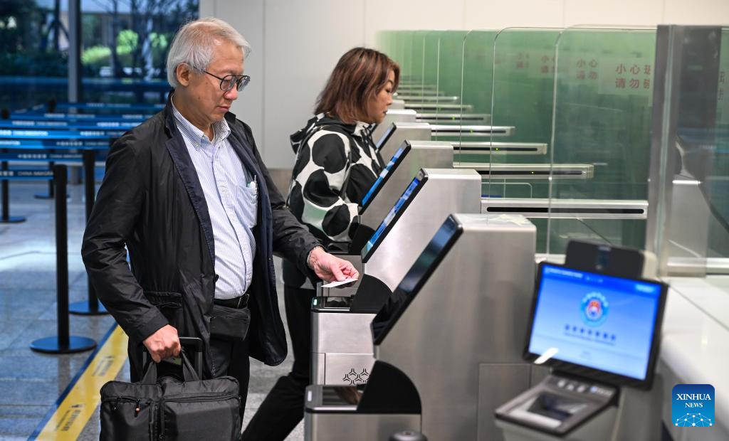 A passenger goes through border inspection procedures at Haikou Meilan International Airport in Haikou, south China's Hainan Province, Oct. 15, 2025. Hainan has handled 2 million inbound and outbound trips crossing the border this year as of Oct. 15, with foreign travelers accounting for 53 percent of the total, according to the Haikou General Station of Immigration Inspection. (Xinhua/Yang Guanyu)
