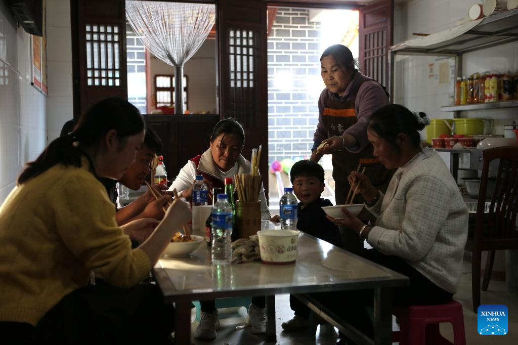 People enjoy cold bean jelly noodles in Baiwu Village of Huize County, southwest China's Yunnan Province, March 24, 2026. (Xinhua/Lin Liping)
