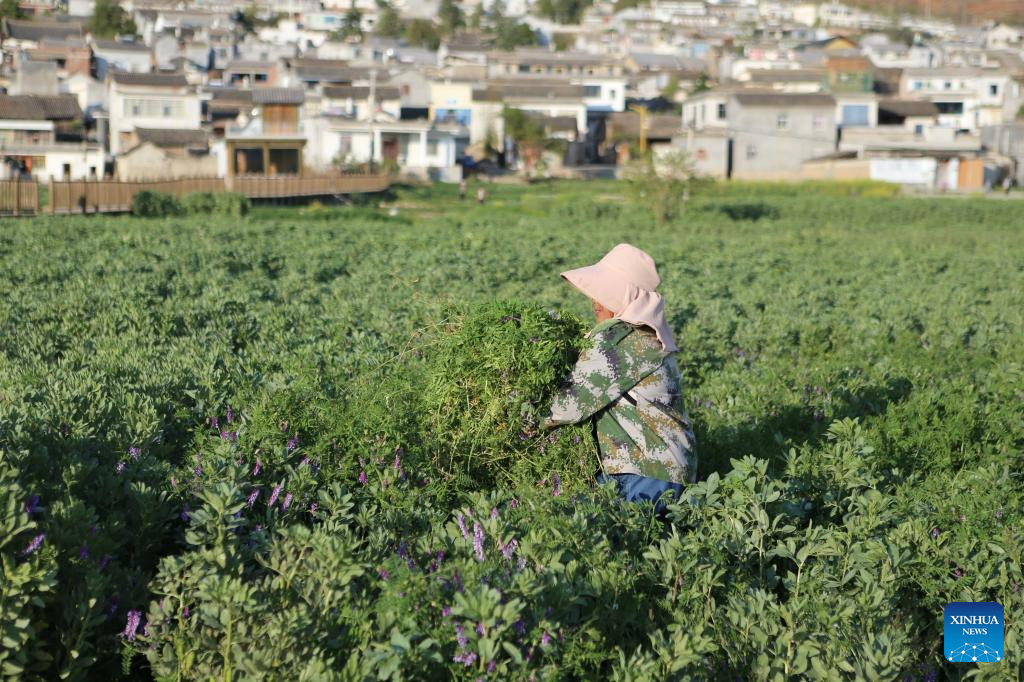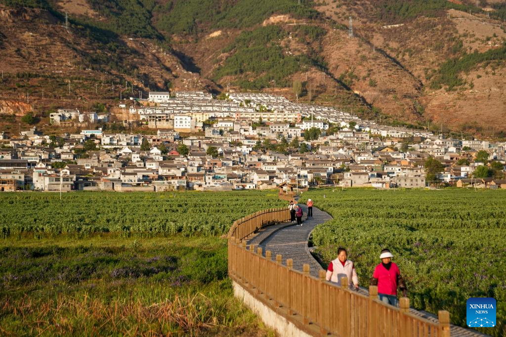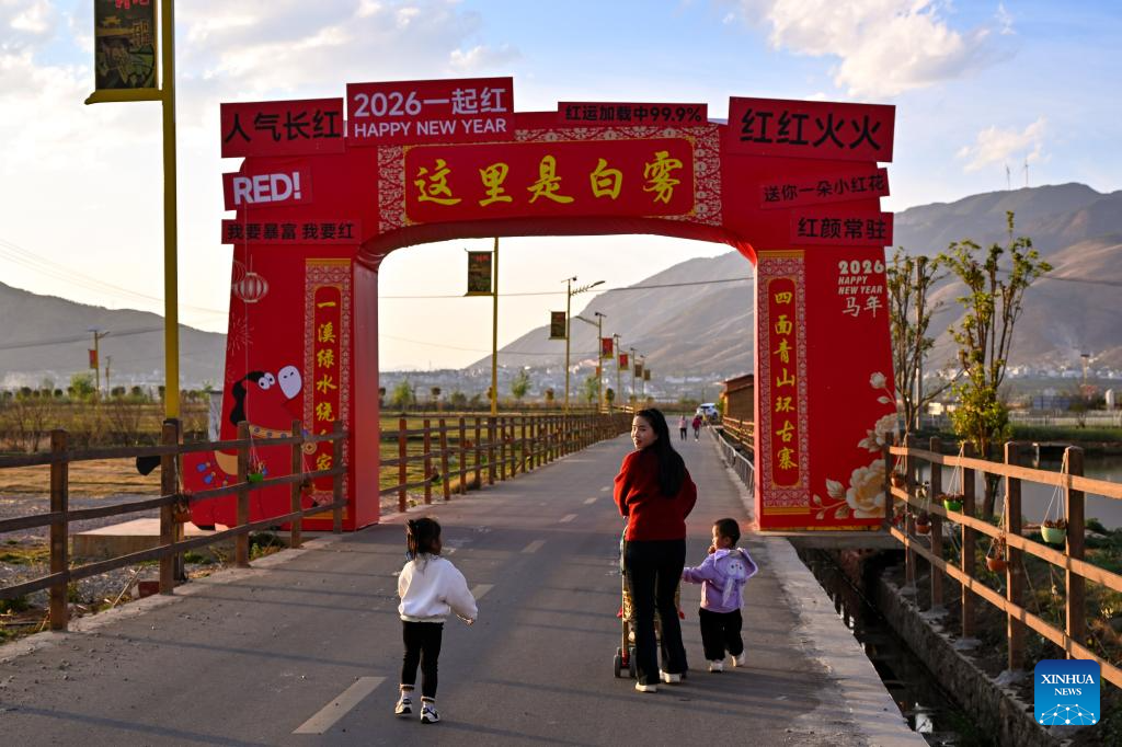 People take a walk in Baiwu Village of Huize County, southwest China's Yunnan Province, March 24, 2026. (Xinhua/Peng Yikai)