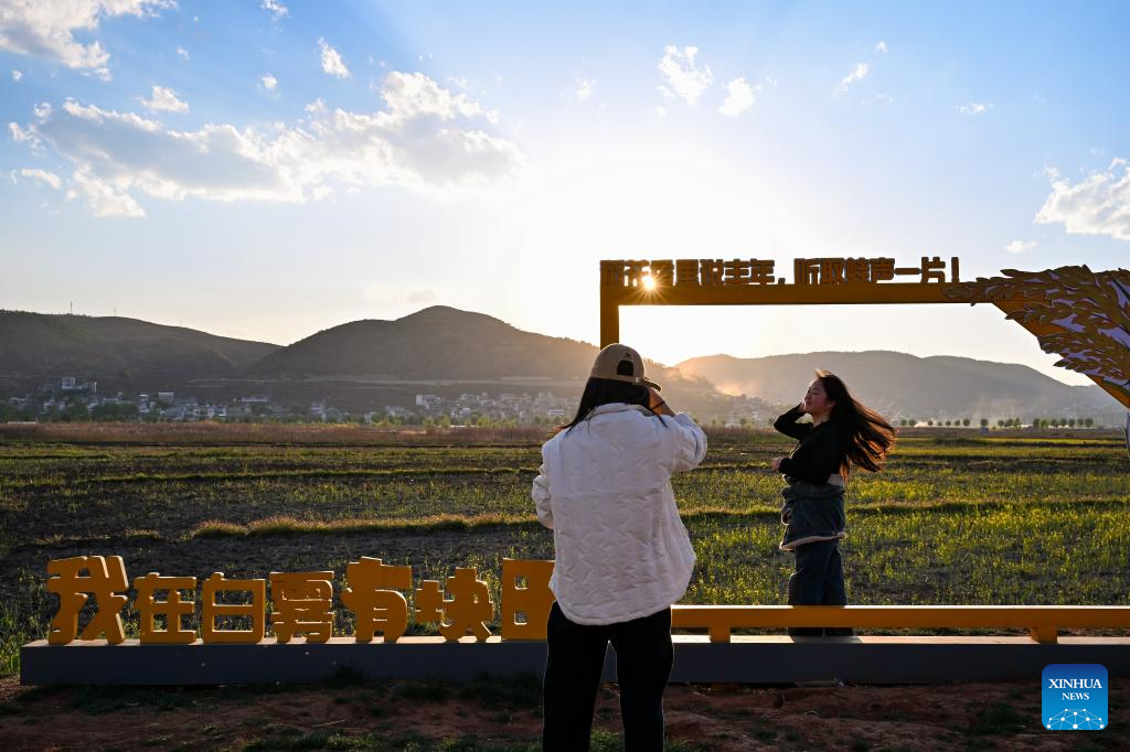 Tourists take photos in Baiwu Village of Huize County, southwest China's Yunnan Province, March 24, 2026. (Xinhua/Zhang Cheng)