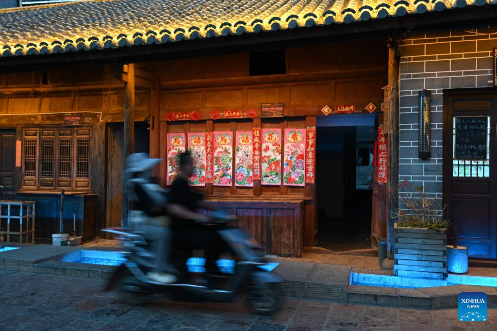Villagers ride past a household in Baiwu Village of Huize County, southwest China's Yunnan Province, March 24, 2026. (Xinhua/Huang Xiaoyong)
