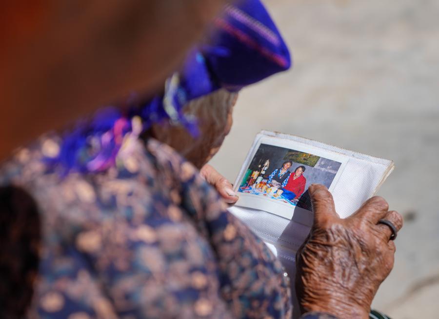 Konjo Chodron looks at a picture at home in Nyemo County, Lhasa City, southwest China's Xizang Autonomous Region, March 6, 2026. (Xinhua/Jigme Dorje)